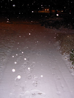 It snowed today. In fact, it is still snowing as I type this. Our first snowfall. The kind of snow that is perfect for making snowballs. The kind that crunches loudly under your feet as you walk down the sidewalk. It is the snow that somehow has the ability to calm the night air. It stills the hustle and bustle of city life. Peaceful. Stress -Relieving. The kind of snow that beckons one to put on NEW winter outer garments (I just have to share my GREAT find I bought at "Winners" last night...)